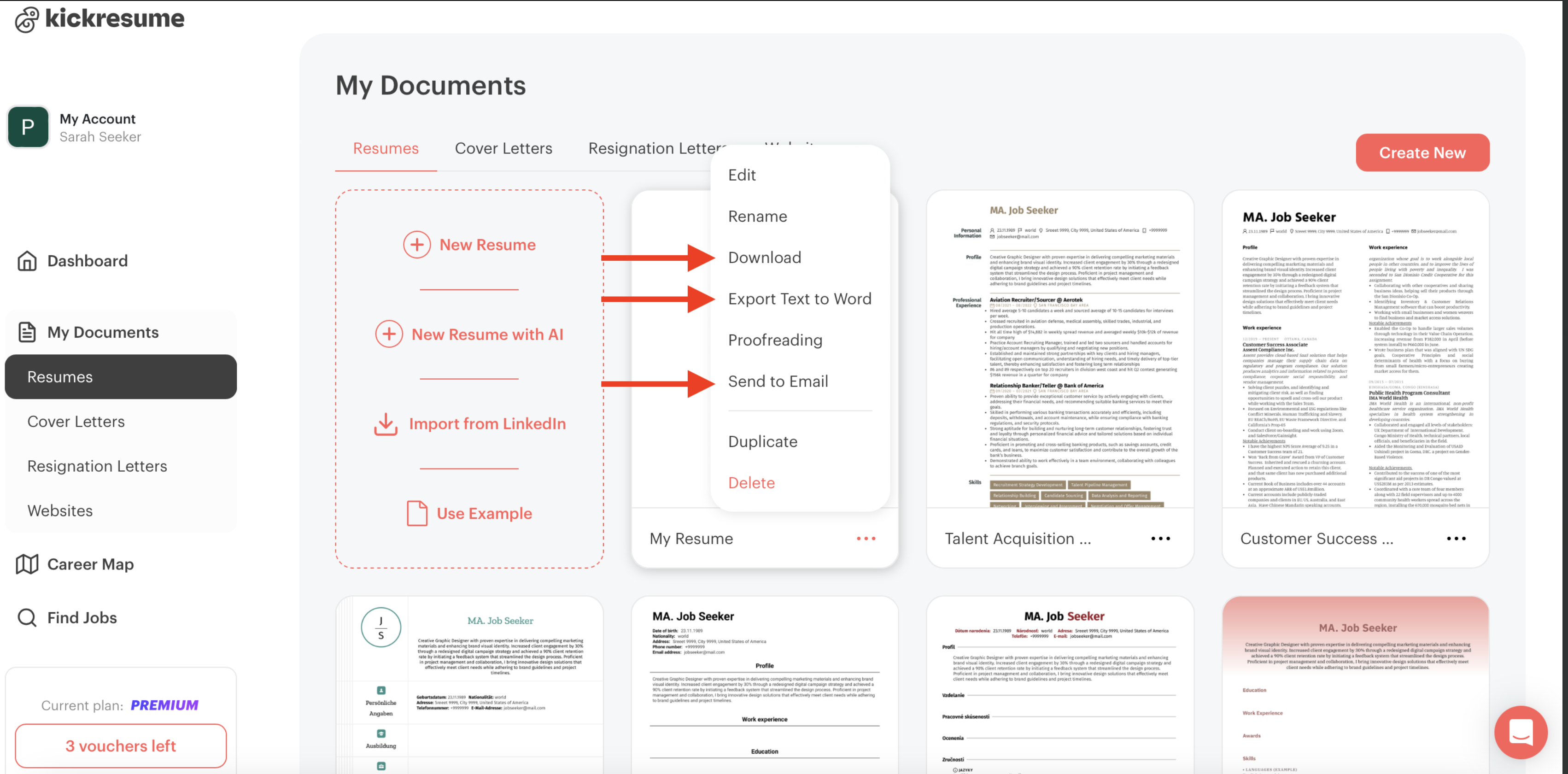 Kickresume leverages AI to write entire sections of your resume for you based on your job title. It’s a great starting point if you have writer's block and are staring at a blank page.