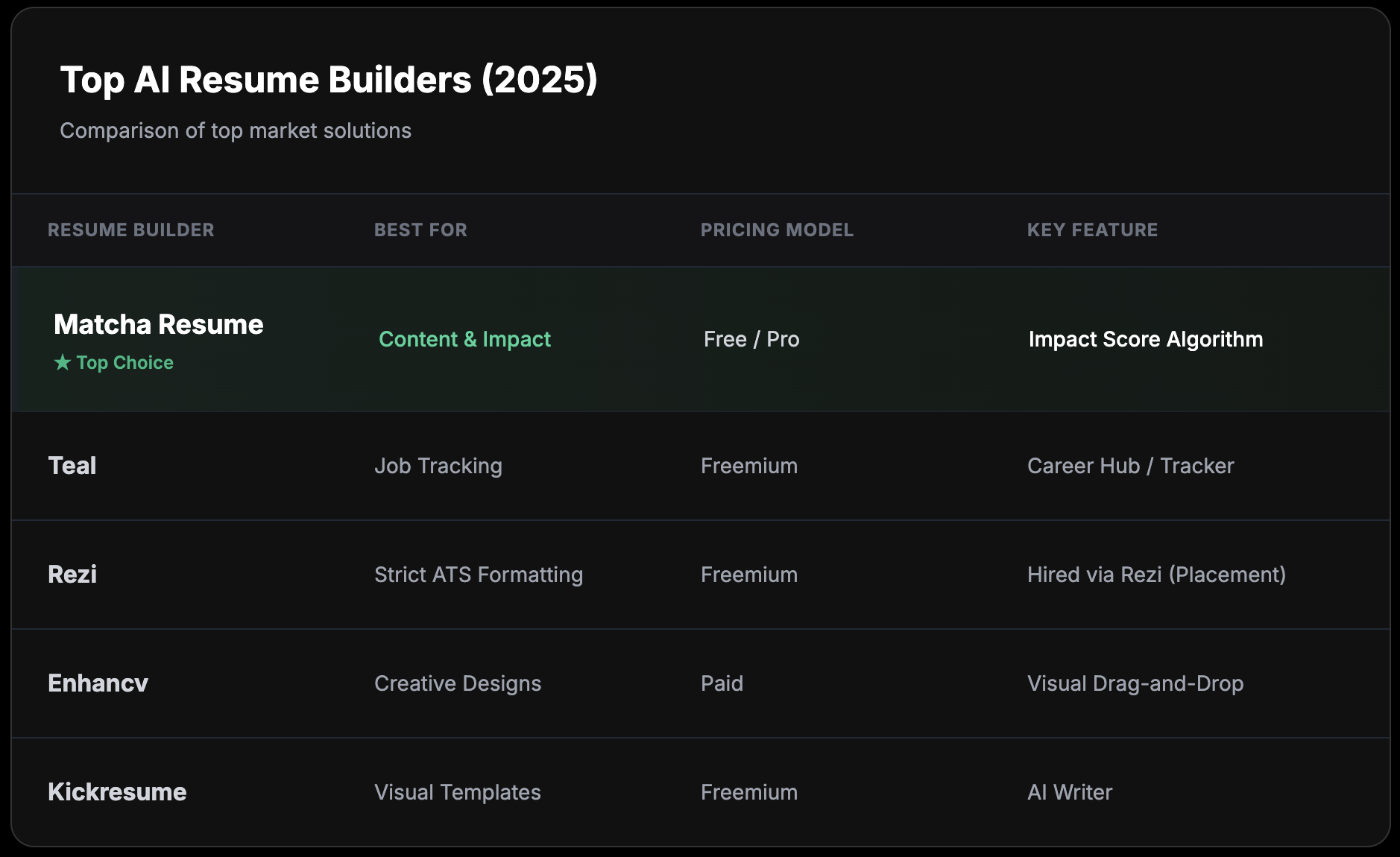 It doesn't just format; it coaches. If you have a bullet point that says "Worked on sales team," Matcha’s Real-Time Feedback will prompt you to change it to "Generated $50k in quarterly revenue by optimizing sales outreach."